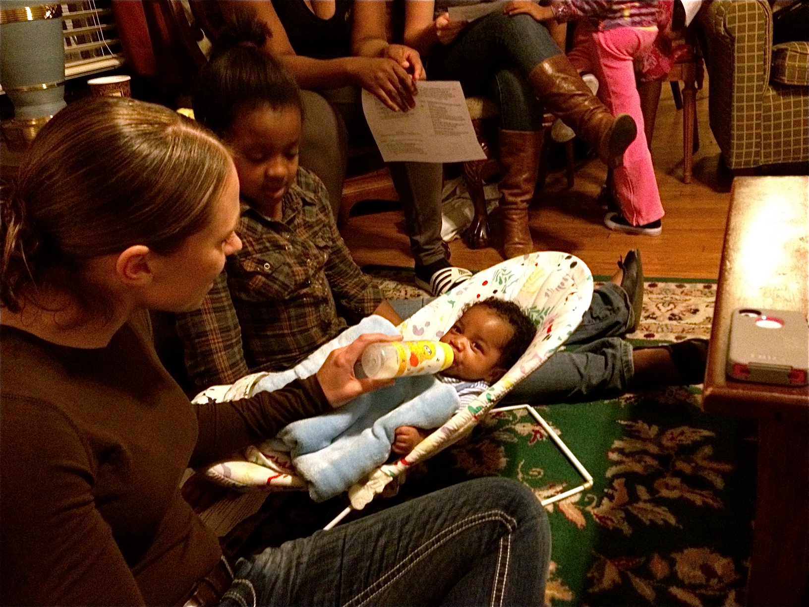 After cookie decorating and storytelling, everyone gathered in the front room for prayer. Whether you’re religious or not, you’ll feel welcome. The group says a few simple prayers and then asks if anyone would like to say something that they’re thankful for. The kids jumped in right away. I was touched by their thoughtful answers as they said thanks for many of the things that we take for granted everyday. “A roof over our heads” one child said. “My family” said another. And the list goes on. Warm clothes. Volunteers (that made me smile). God’s grace. Cookies! And second chances. Pause. Second chances. I heard an eight year old girl thank God for second chances. It makes you wonder how much she’s seen in her young life and what the future holds for her.