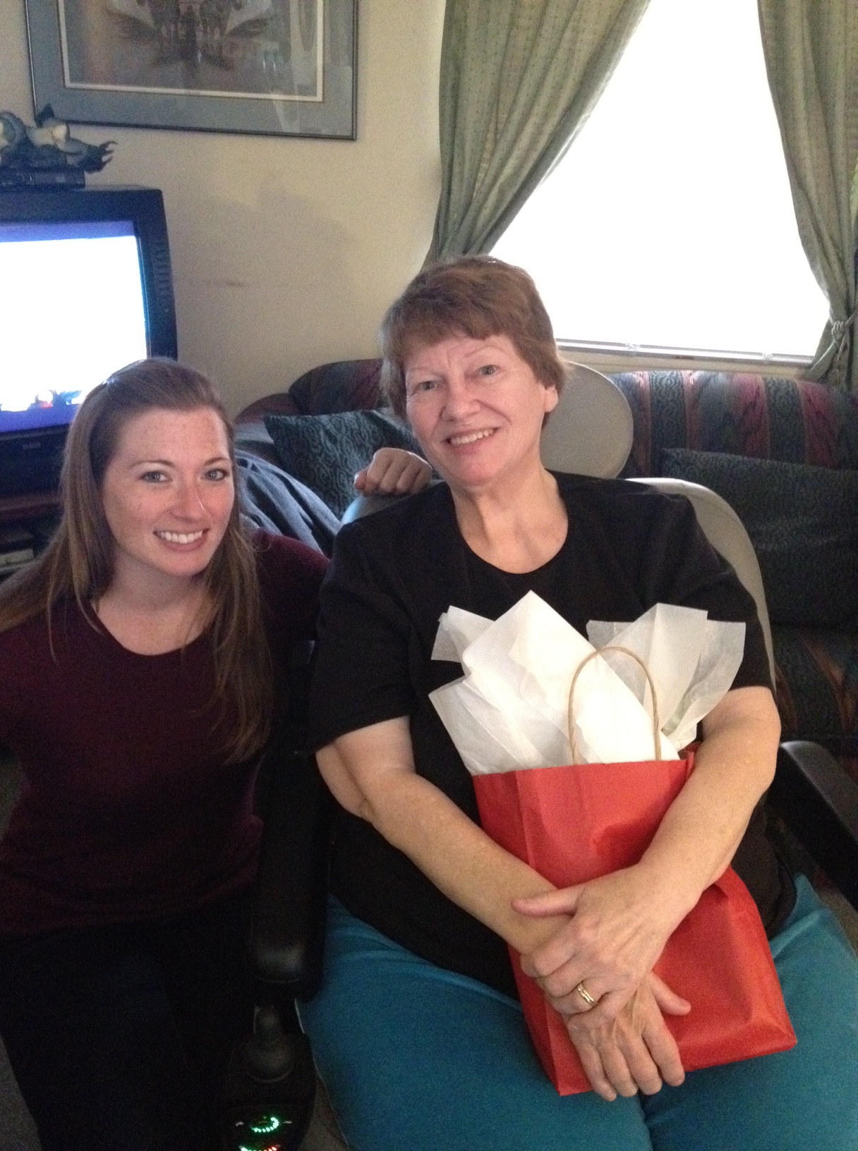 After many stories and several hugs it was time to leave. At one point Cathy took both of my hands in hers, which caught me off guard. She looked at me very intently and told me how much she loved my project about volunteering. I smiled and nodded politely, which was apparently insufficient! Cathy pumped my hands up and down for emphasis and told me again how important it was to volunteer and how much she enjoyed talking with me. I gave her a big hug.