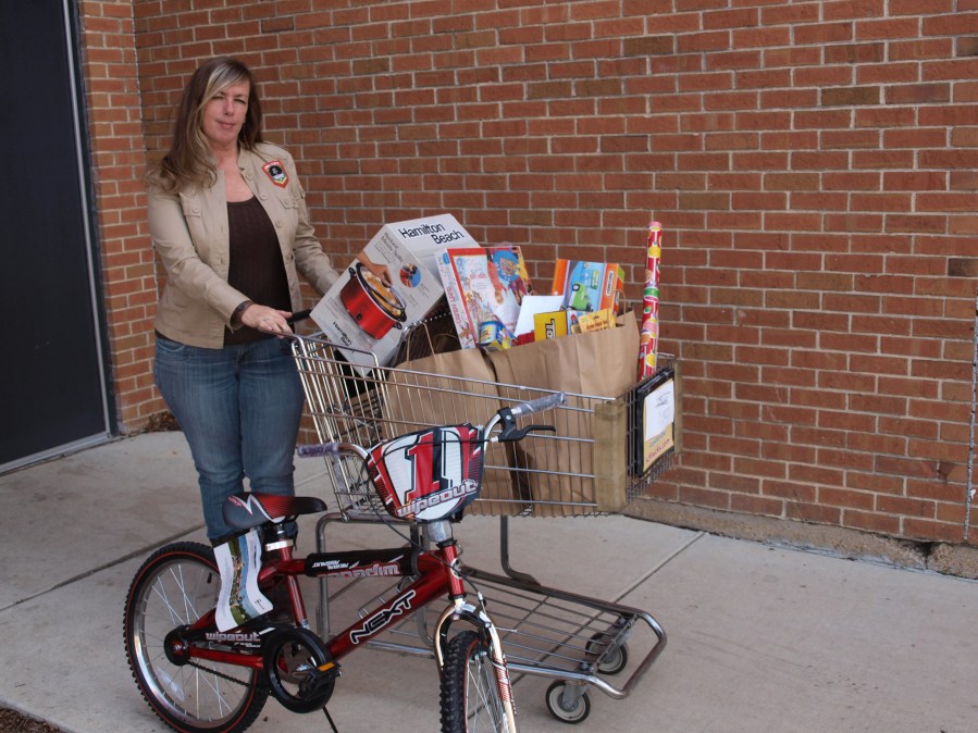 Lisa displays the gifts she selected at the Christmas Shop at Kingdom House in St. Louis